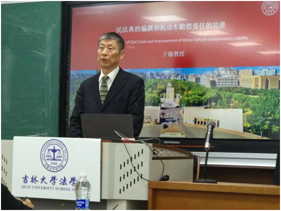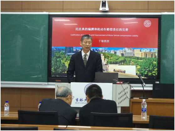讲座主要围绕如何在民法典编纂过程中纠正损害赔偿法在立法上的不足展开。于敏教授以机动车损害赔偿这一典型的责任类型为视角,从立法的过去时与进行时、机动车损害赔偿责任的产生与性质、我国的社会环境与机动车损害赔偿责任、民法典编纂应如何应对这四个方面进行讨论。于敏教授指出机动车损害赔偿责任的性质有三:其一是对应机动车这种交通工具造成他人损害设立的责任,其特点是针对危险源;其二该责任是保有人责任;其三是机动车损害赔偿责任保险是被保险人对第三者的责任保险。随后于敏教授指出了现行机动车损害赔偿责任制度的一些缺陷,最后于敏教授认为编纂民法典任重道远,各个分则中还有很多问题需要研究,于教授鼓励在座师生勤学多思,多研究民法中的真问题,为民法典的编纂贡献应有的力量。