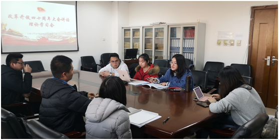 本科生党支部组织开展了“学习习近平总书记在庆祝改革开放四十周年大会重要讲话”主题学习会。与会师生充分探讨了改革开放四十周年的风雨历程和丰硕成果,认真学习领会了改革开放四十周年大会讲话的深刻精神。