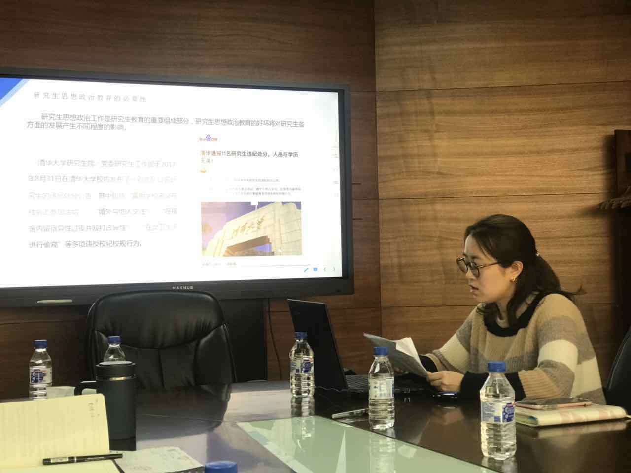 会上,法律硕士中心办公室徐晋以 “关于新时代研究生思想政治教育工作的思考”为题,结合P站