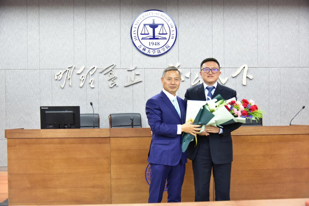 会后,接着召开了李韧夫教授荣休仪式。刑法教研部主任陈劲阳教授作为教师代表进行了富有感情致辞。他代表全体教师表示:作为李老师的后辈,一定谨记李老师的谆谆教诲,以李老师为榜样,不断精进学术修养、厚植人格力量。王弘宁老师代表刑法教研部向李老师献花。