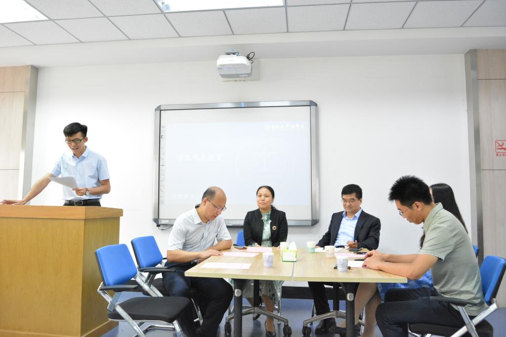 首先,学生代表王童进行发言。他对实验班教学点滴与师生趣事的回忆与感悟引发一片笑声与掌声。同时,他对实验班设置的意义及对人生的感想引发了同学们的思考。他提到,实验班课程不仅对同学们升学考试有所帮助,更启发同学们磨砺思想,砥砺前行,学会在“法律的开放型结构中艺术化地处理纠纷”。最后,他祝福并激励同学们,怀抱热爱,发现并创造美好。