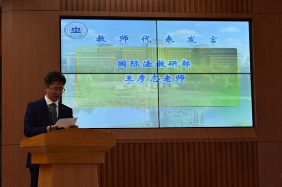 2019年“我最喜爱的教师”颁奖。共有王彦志,艾琳,孙良国,李拥军,李海平,何志鹏,郑军男,赵海乐,姚莹,曹险峰十位教师获此殊荣。王彦志老师作为教师代表进行发言,他向同学们表达了美好的祝福,希望大家都能“做一个善良纯真的法律人,像法律人那样思考,诗意地栖居在大地上。”