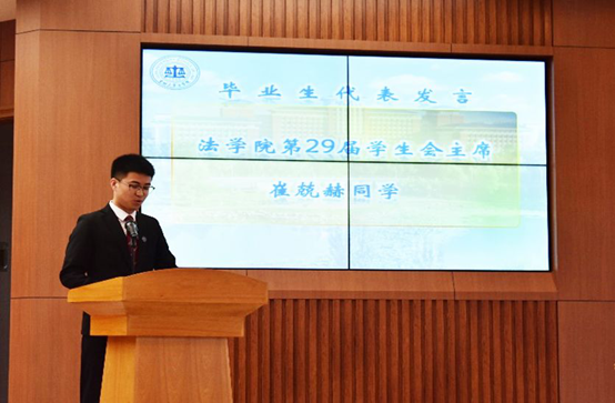 随后2019届本科毕业生崔兢赫和2016级在校生陈俊铮分别代表毕业生和在校学生发言,分别表达了对学院的感谢、对同学的勉励与对师哥师姐的祝福。