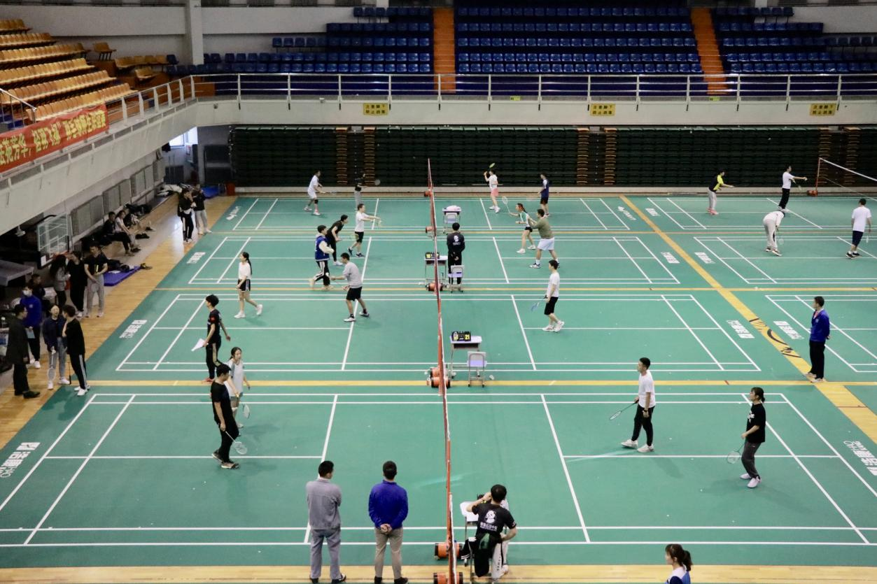 体育学院的四位运动员在赛场上挥洒汗水,奋勇拼搏,充分展示了体育健儿的青春风采,为在场同学们来了一场竞技性与观赏性兼具的表演赛。随后正式比赛拉开帷幕,本次比赛主要以羽毛球团体赛为主要赛事形式,包括了“男子双打”、“女子双打”、“混合双打”三类赛事。比赛共分三个阶段进行,第一阶段小组循环,每组取胜场次数多的前两名进入第二阶段比赛;第二阶段淘汰赛,由比赛八强选手晋级第三阶段比赛。第三阶段是半决赛和决赛,产生本次比赛的团体冠、亚、季军。