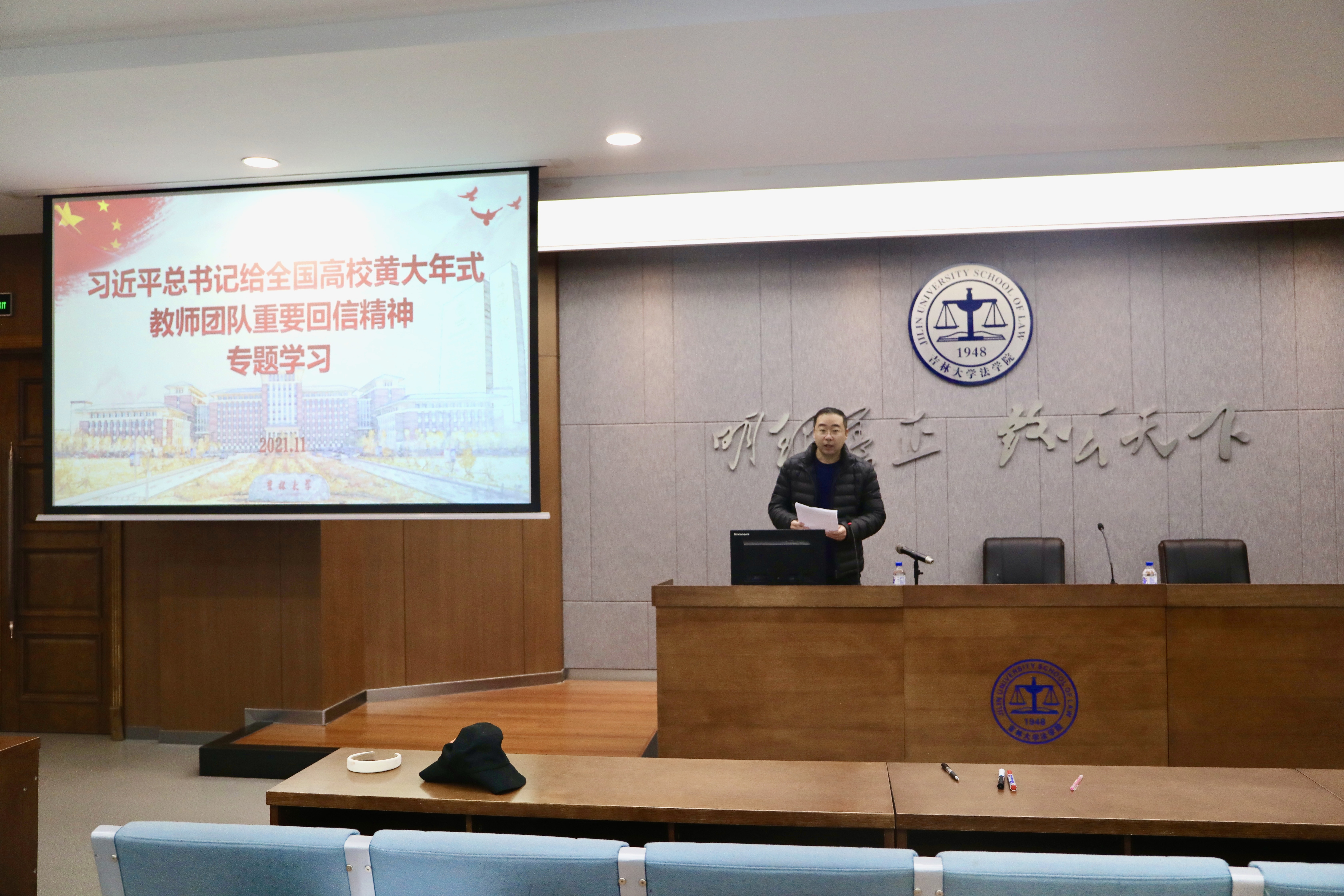 吕欣副院长首先宣读了习近平总书记于9月8日给全国高校黄大年式教师团队代表回信的内容,并对回信的背景和内涵进行了详尽地讲解,带领与会教师回顾了黄大年同志的先进事迹,深入浅出的阐释回信精神的重要意义。他指出,黄大年同志秉持科技报国理想,把为祖国富强、民族振兴、人民幸福贡献力量作为毕生追求,为我国教育事业作出了突出贡献,他的先进事迹感人肺腑。习近平总书记在给全国高校黄大年式教师团队的回信中表达了对学习弘扬黄大年同志等优秀教师高尚精神的肯定。习近平总书记的回信内容催人奋进,既是对高校黄大年式教师团队的勉励,也是对教师修身治学丰富内涵的深刻阐释,我们要以习近平总书记的重要回信精神为指引,始终牢记身为教师的使命与责任,坚持立德树人根本任务,为党育人、为国育才,以黄大年同志等优秀教师为榜样,弘扬高尚情操,心有大我,至诚报国。同时,希望教师立足本职岗位,自觉提升师德修养,增强业务能力,以争创成为黄大年式教师团队为目标,锐意进取,攻坚克难,为学院的学科建设、人才培养、科学研究和社会服务等方面贡献力量。