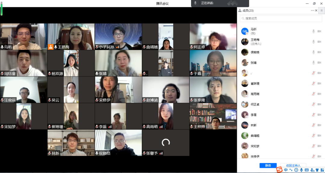 在王艳梅老师的带领下,大家以坚定的抗疫信心和饱满的工作热情科学、有序的开展线上师门小课,通过广阔的在线教学平台,将分布在学校寝室以及居家的二十余位同学紧密的连接在了一起。