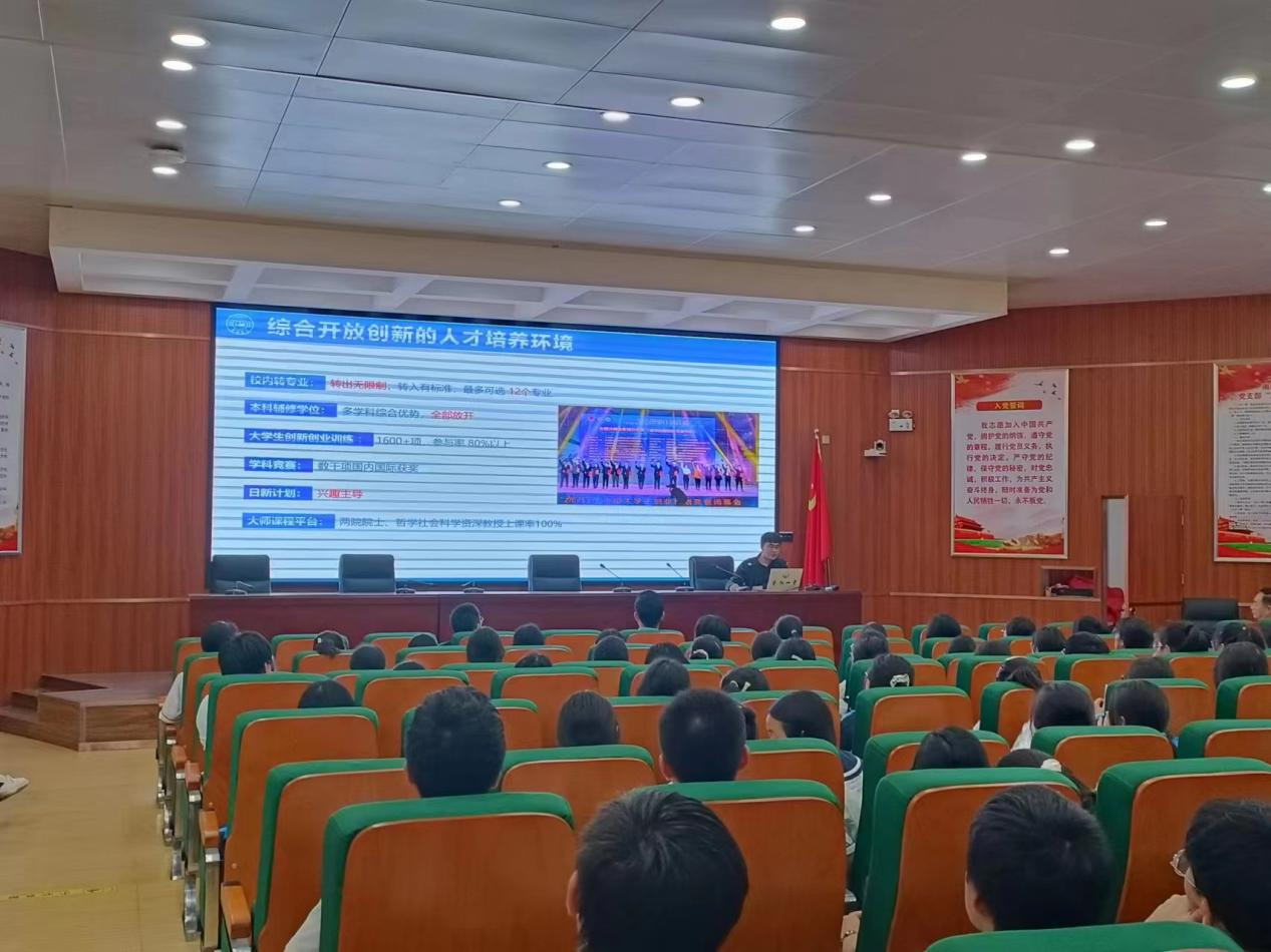 4月19日下午,招生宣传团队前往南阳市第一高级中学举行优秀生源基地授牌仪式并进行招生宣讲。刘舰在授牌仪式上充分肯定了南阳市第一高级中学在教育教学上的优异成绩,连续几年为P站