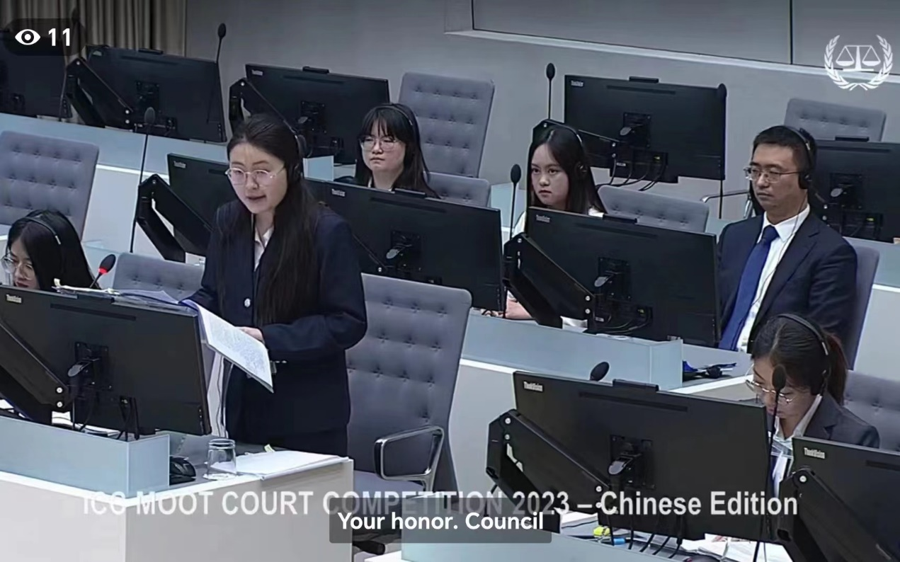 本次国际赛承自2023年4月举行的“国际刑事法院中文模拟法庭”国内赛。在国内赛阶段,我院代表队以团体一等奖、团体最佳庭辩奖、一项个人最佳庭辩律师奖、三项个人十佳庭辩律师奖等多项奖项的优异成绩,晋级海牙国际赛。