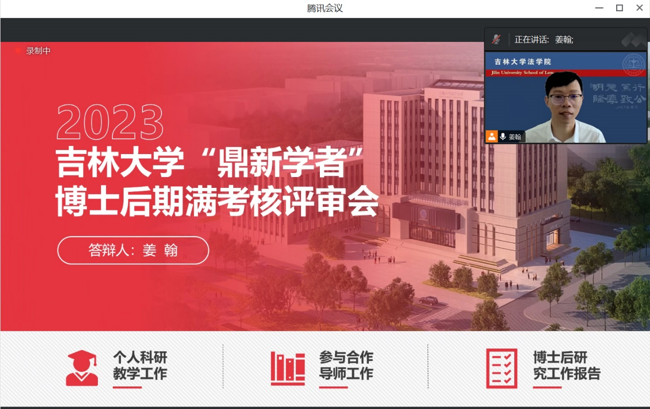 刘晓林教授首先介绍了参加此次评审会的专家学者,并对评审会基本流程进行了说明。我院“鼎新学者”博士后姜翰博士首先就在站期间开展的工作情况、取得的科研成果及博士后研究工作报告情况,向在座的各位专家进行汇报。个人科研教学方面,姜翰博士主要就发表的代表性论文进行了展示,同时也介绍了个人参与教学培训及学术会议的情况。参与合作导师工作方面,姜翰博士主要介绍了参与合作导师国家社科基金重大项目的基本情况,包括参与项目系列学术会议、项目系列学术讲座、项目子课题研究工作及项目事务性工作等内容。博士后研究工作报告方面,姜翰博士主要从选题缘由、研究思路、研究内容及核心观点等方面进行了汇报。