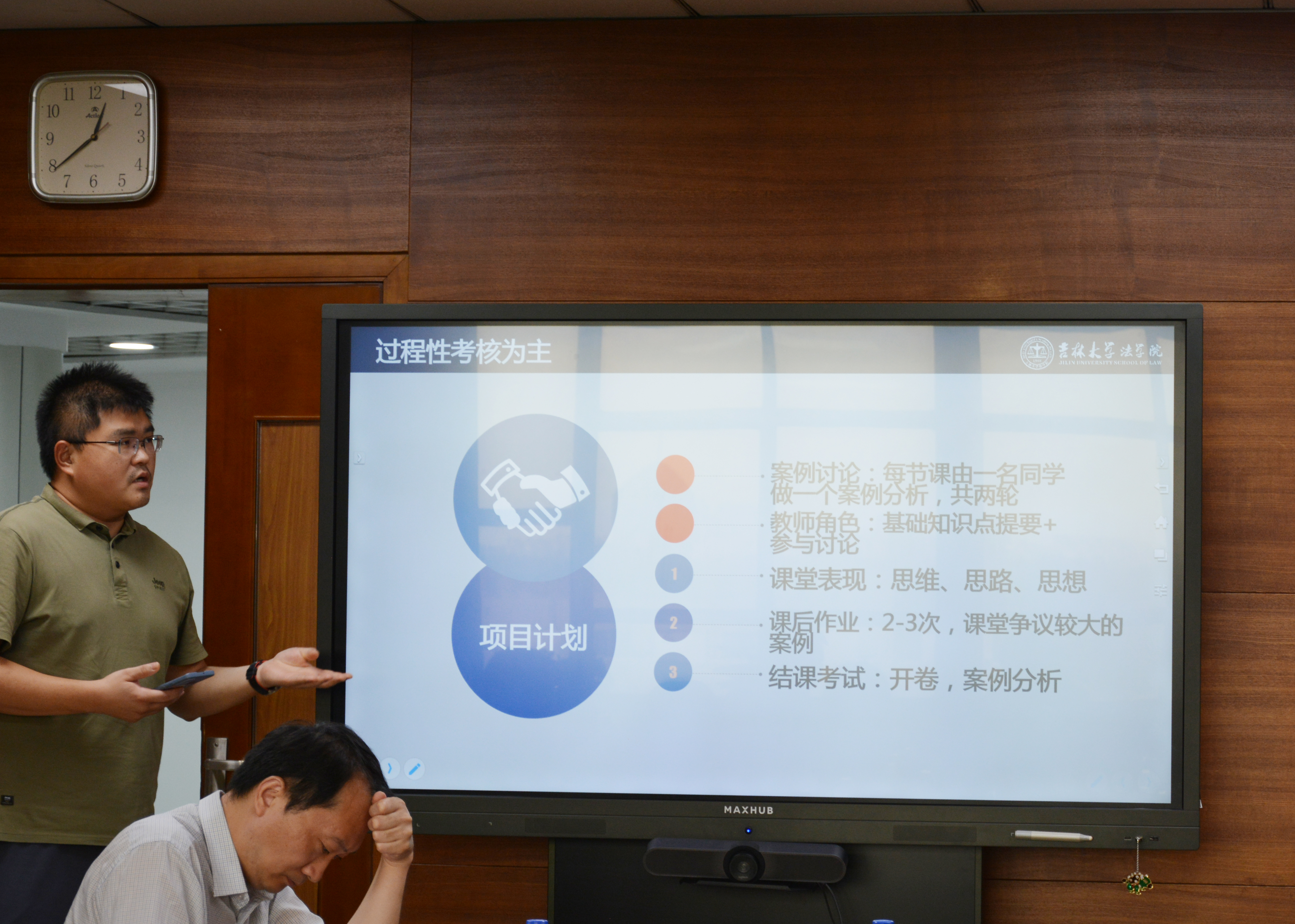 本次座谈会的重点是研讨如何综合运用课堂提问、小组讨论、作业、论文等多种方式,做好过程性考核。会上,与会老师介绍了国内外相关院校的先进做法,结合法学专业本科课堂教学的特点和实际,在模拟法庭、案例研讨、法律文书写作、情景和角色代入、热点问题导入、翻转课堂、交叉融合、新兴领域等方面进行了充分的分享和讨论。闵春雷教授强调,要平衡好老师知识传授和学生自主学习之间的关系,强化法律思维的塑造,科研能力的训练和综合素质的培养。