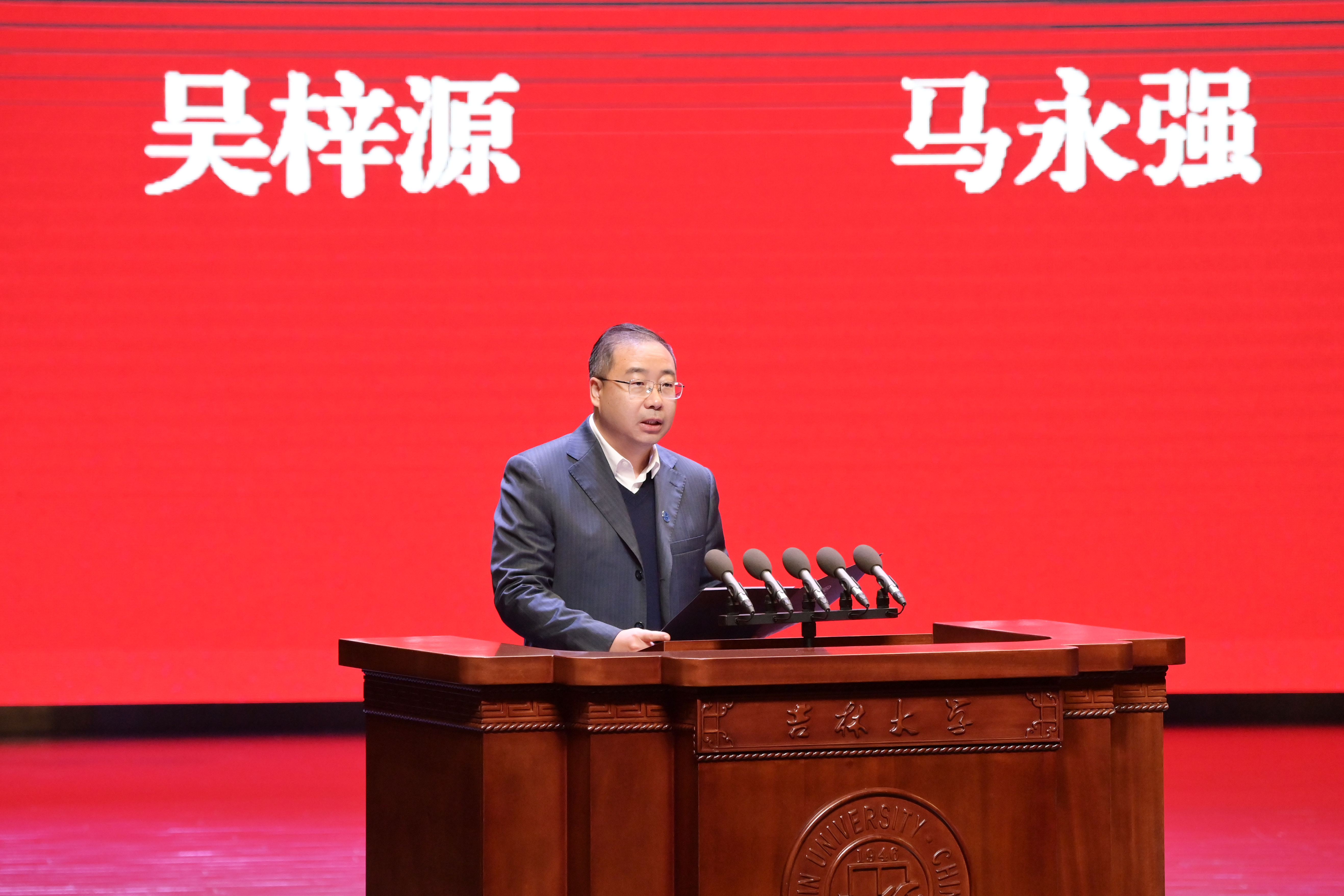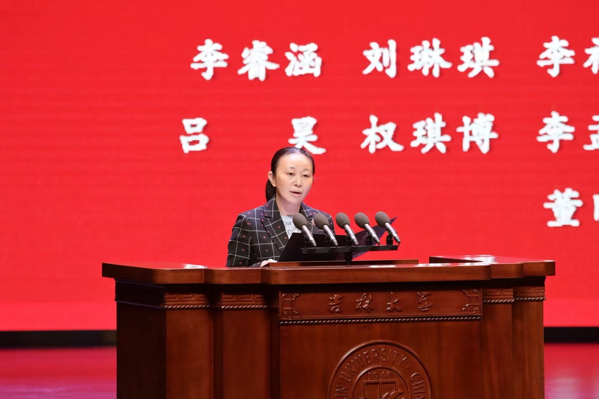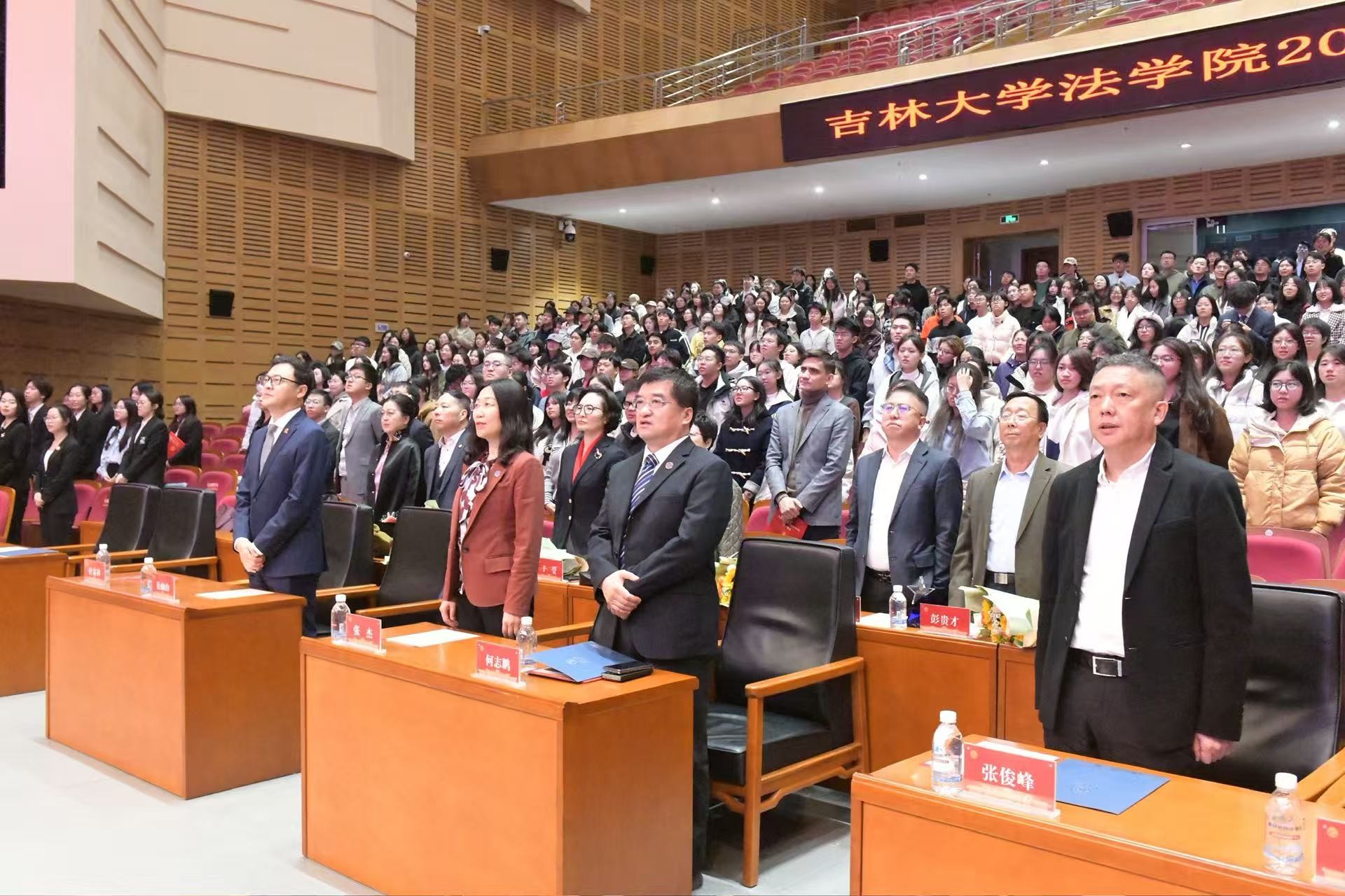 先贤为炬,师者如星。典礼伊始,全体师生共同观看了第13期《致敬先贤——吉大法学逐梦前行历史纪录片》。片中,任振铎先生1950年代授课的黑白影像、堆典籍的书桌、致学生的泛黄信笺次第展开,讲述其深耕法学研究、参与早期立法、培育数十位行业骨干的师者人生,更彰显“与党同心”的育人初心。先贤事迹深深触动师生,更让“明德笃行,隆法致公”的院训文脉清晰可感。现场静默凝视间,精神的火种已悄然传递。