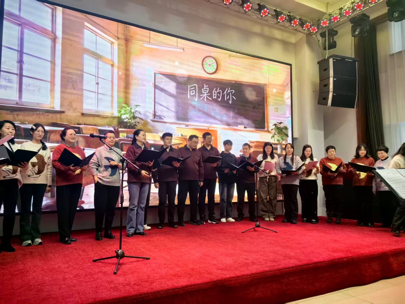教师合唱团率先登场,以“用歌声传递温度,以艺术滋养心灵”为宗旨,先后带来《同桌的你》《想把我唱给你听》《我是象牙塔里的一棵树》三首合唱曲目,其中原创歌曲《我是象牙塔里的一棵树》由任喜荣教授创作,歌声中满含教育工作者的坚守与芬芳,赢得全场阵阵喝彩。独唱节目同样惊艳,贾志强老师和特邀小嘉宾的《勇敢的心》传递无畏热忱,瓦伦丁老师的跨国界演唱展现多元艺术魅力,房绍坤老师的《天边》则以熟悉旋律带来春日暖意。