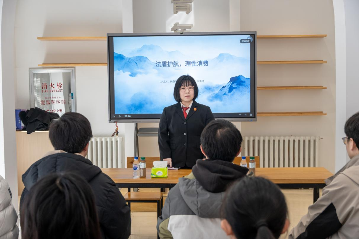 在大学城社区,长春市朝阳区人民法院立案二庭庭长谷孟储、张晓漫法官以“法盾护航,理性消费”为主题,结合多年司法审判实践,用通俗易懂的语言细致剖析消费维权典型案例,帮助同学们进一步理解消费者权益保护相关法律规定。针对大学生群体易遭遇的消费法律风险,法官重点作出提醒警示,引导同学们树立理性消费观念、明确合理消费需求,从源头降低消费维权风险。