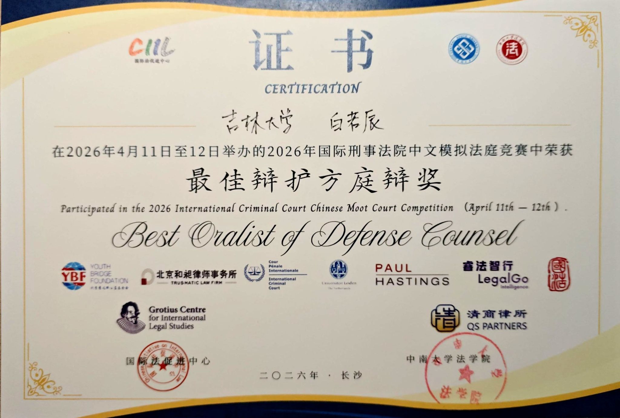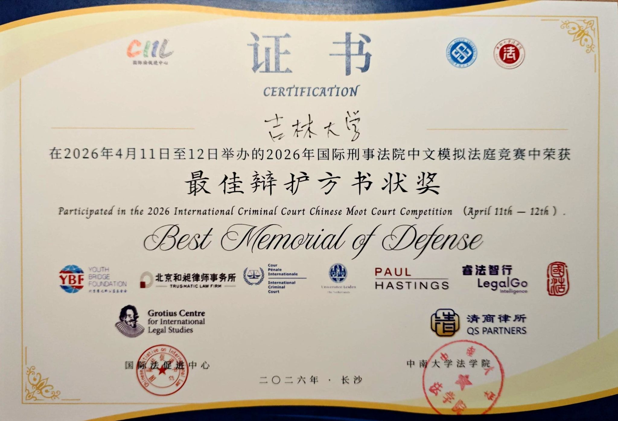 我院代表队再次荣获国际刑事法院中文模拟法庭竞赛全国一等奖等多项奖项、晋级海牙国际赛
