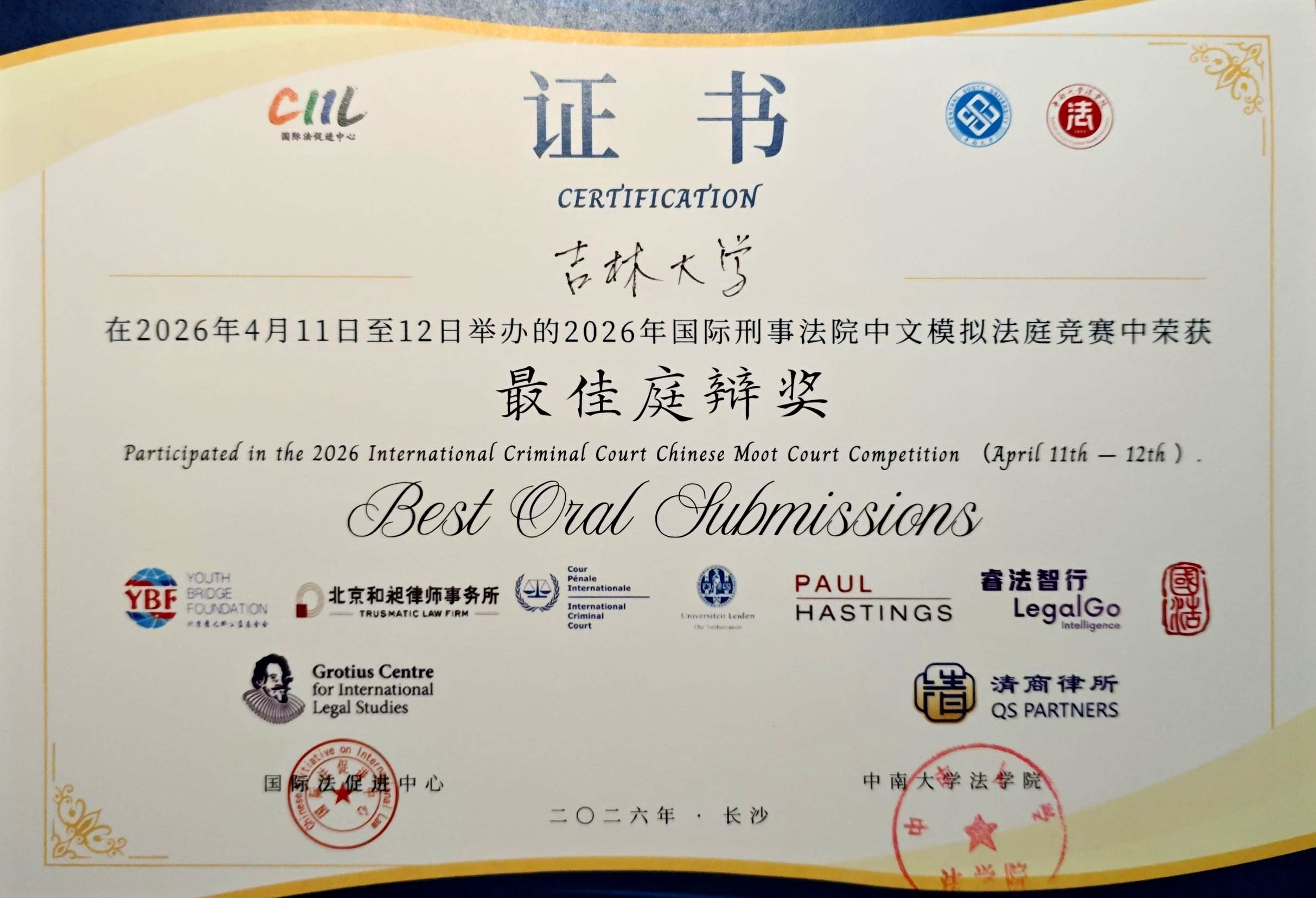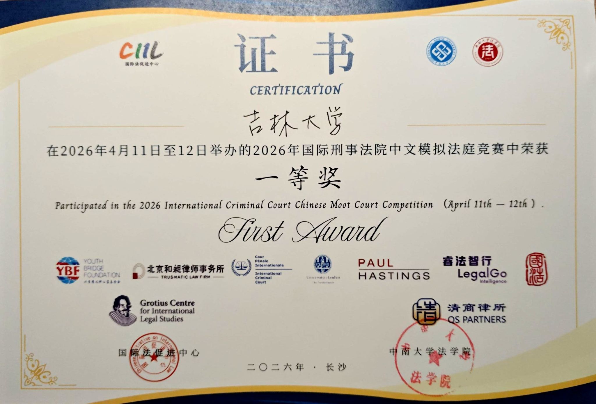 2023年以来,我院代表队已连续四年在此赛事中荣获全国一等奖,晋级海牙国际赛。此次佳绩,也是继2026ICC英文赛国内赛夺冠并闯入国际赛后,我院代表队拼搏精神的又一次有力延续。