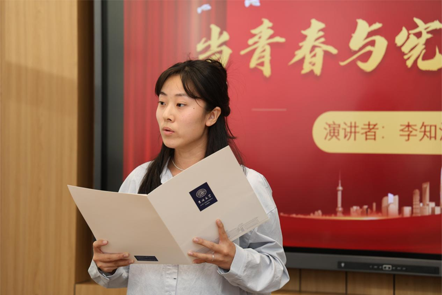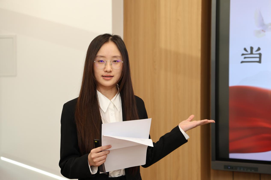 9.李知润同学演讲《当青春与宪法共鸣》:分享本科室友因家庭变故获国家助学贷款继续学业的故事,诠释宪法第46条受教育权的实践温度,展现宪法作为“安全网”与“灯塔”的民生价值,情感真挚,引发共鸣。