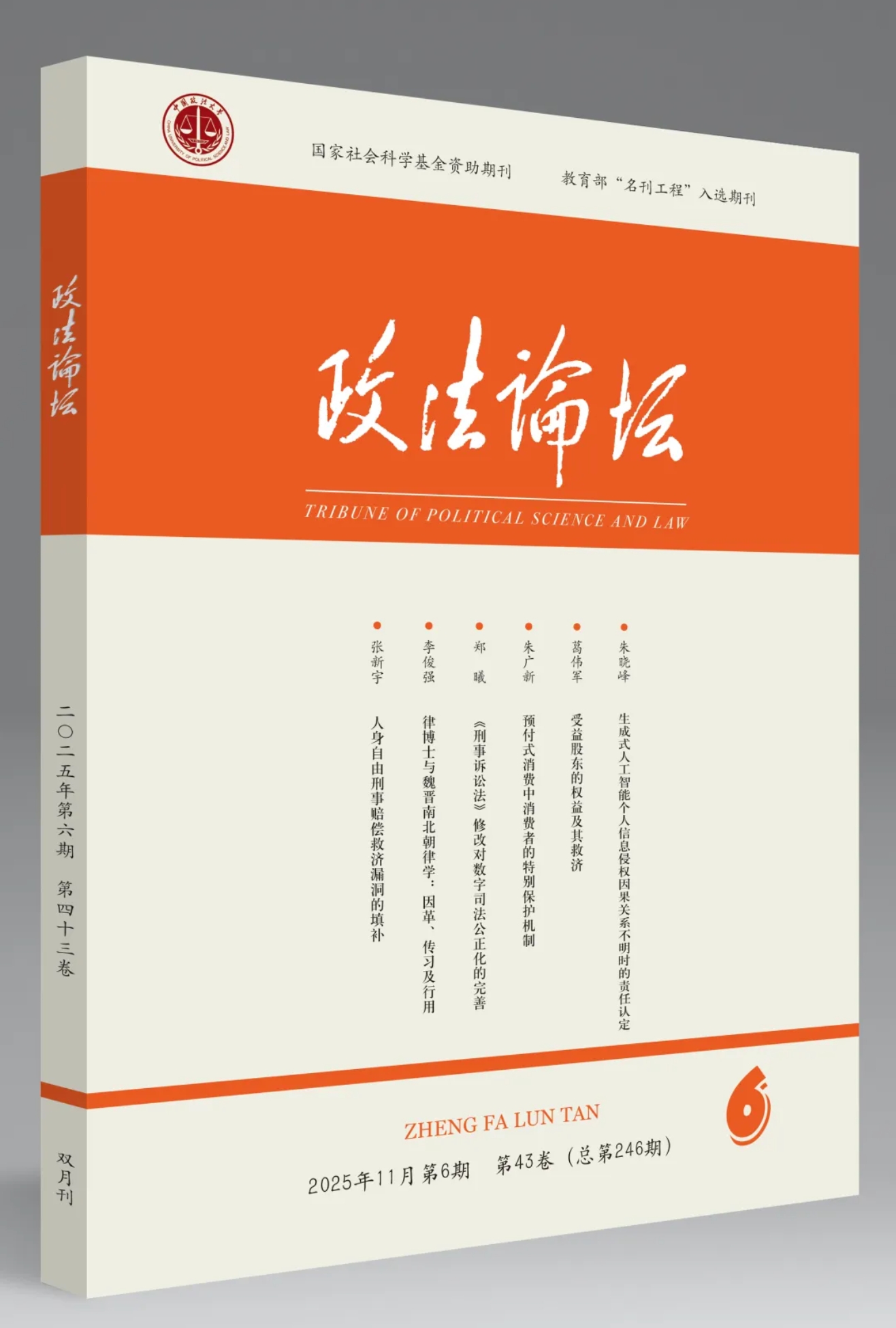近日,《政法论坛》2025年第6期刊发了我院陈洪磊老师的学术论文《公司董事勤勉义务的类型化研究》。
