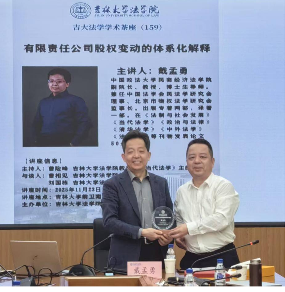戴孟勇教授以“有限责任公司股权变动的体系化解释”为题,为师生带来一场精彩学术讲座。本次讲座由曹险峰教授主持,曹相见教授、刘国栋副教授参与与谈,我院部分师生参与本次讲座。