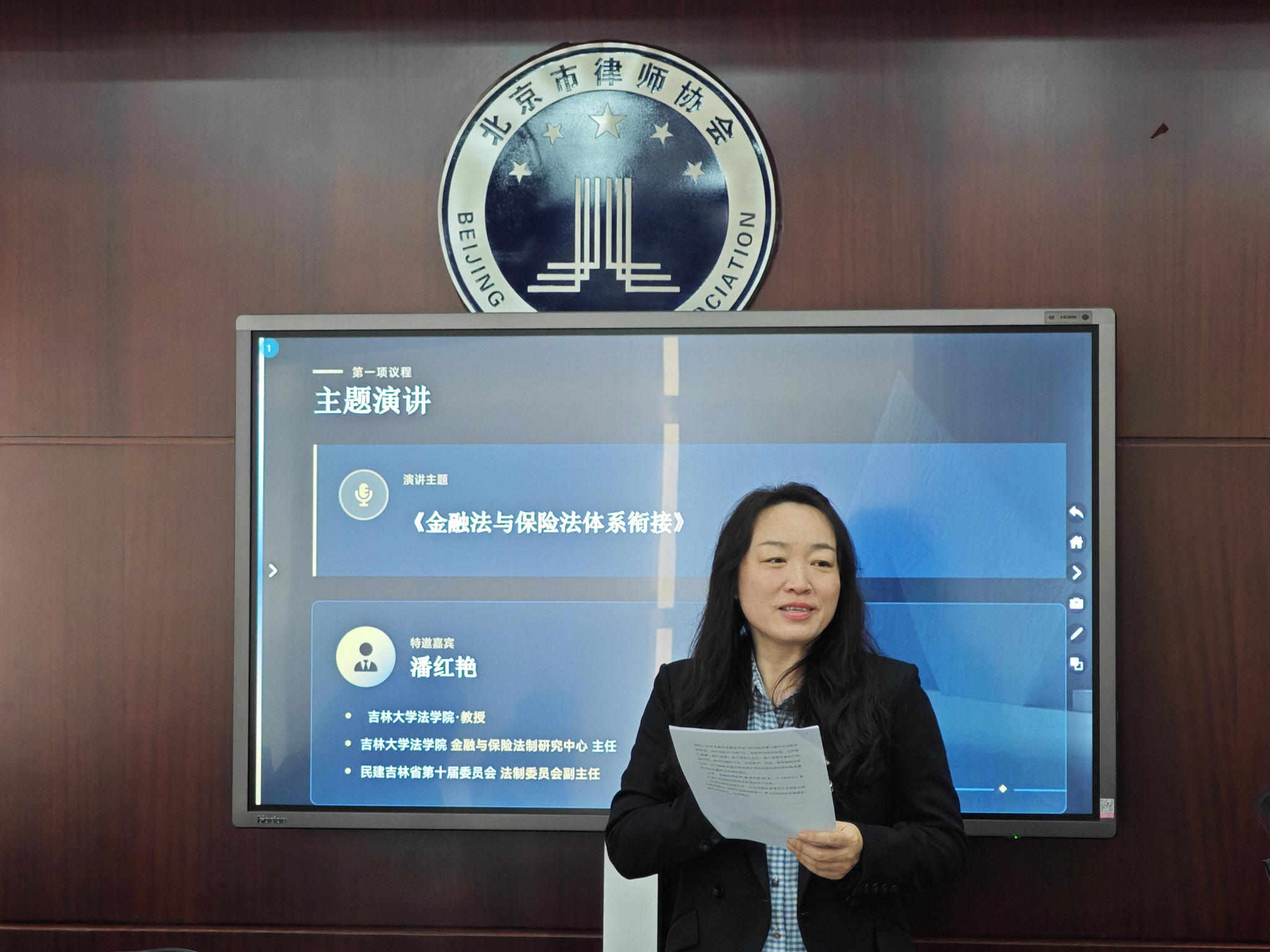 2026年4月13日,我院潘红艳教授,应北京市律师协会邀请,参加《中华人民共和国金融法(草案)》征求意见研讨会,并作《金融法与保险法体系衔接》主题演讲。